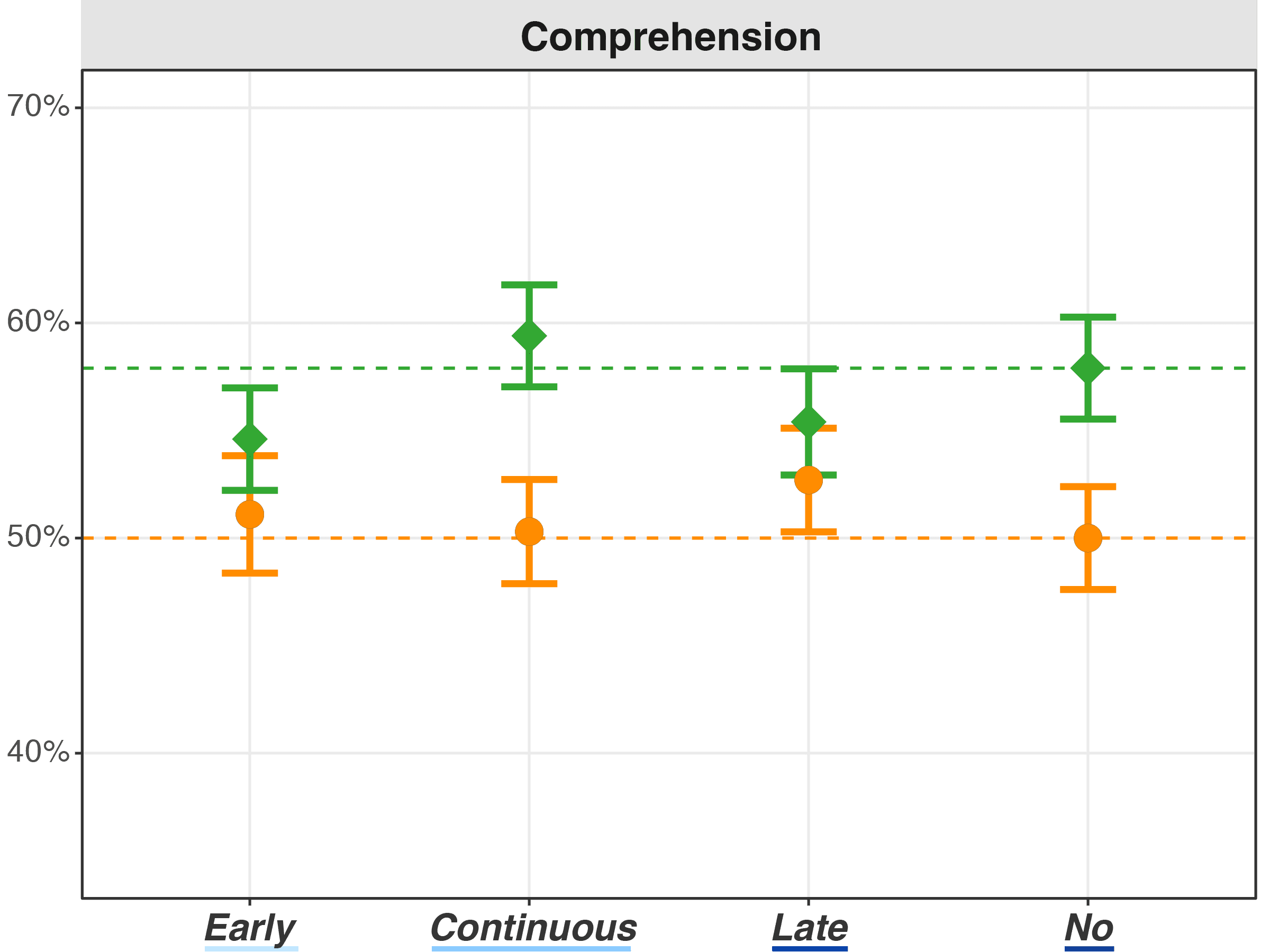 Having Sufficient time generally improved Comprehension correctness, with minimal differences between LLM access timings.